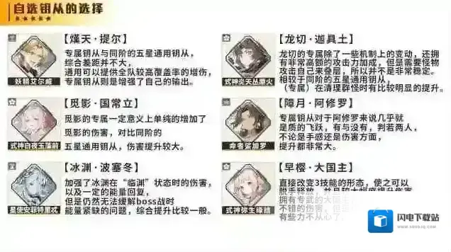 3.专属钥从和自选角色并非强制绑定,不是非得一起选。大家可以看看自己拥有的角色,谁的专属提升更大就选谁,无氪微氪的话,已经有的最好就不要选重复的了。