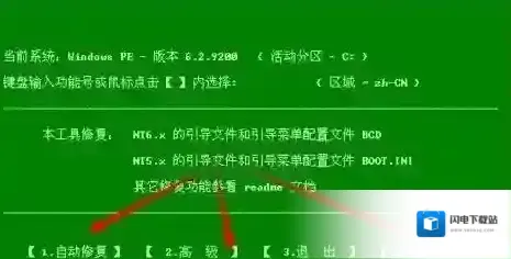 2、打开后有‘自动修复’、‘高级修复’、‘手动修复’,一般情况选择自动修复,所以我们输入 1 按下回车键即可;