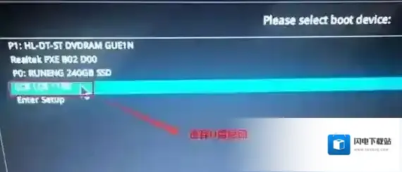 5、插入U盘启动盘,重启按ESC选择识别到U盘启动项,按下回车键: