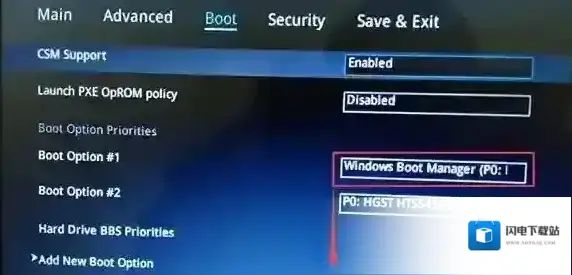 4、继续把boot option#1选项改为普通引导的,boot option#1和boot option#2硬盘启动位置对换,设置第一启动项为普通硬盘引导,带Windwos Boot Manager的为UEFI引导分区,然后按F10保存设置;