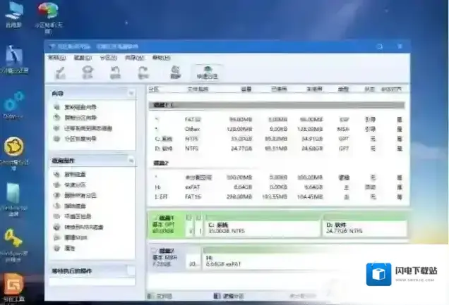 6、分区过程很快,分区完成后,如图所示,GPT分区会有两个没有盘符的ESP和MSR,这两个分区不要去动,只需要看你分出的C、D盘等,如果盘符被占用,选择已经占用C盘的那个盘,左侧选择更改盘符,以此类推,不改也是可以的,可以根据卷标系统来判断系统盘的位置;