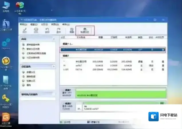 4、进入到pe之后,双击桌面上的分区助手(无损),选择磁盘1,点击快速分区,如果你是多个硬盘,要选对,不要误删;
