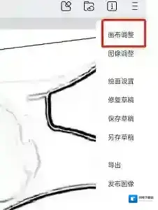 1、首先需要点击一下右上角的三个横,里面的菜单中有一个画布调整选项,如图所示:
