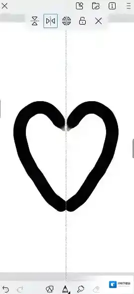 3、当我们点击一个对称样式后,在画布中就会出现一条虚线,这就是对称轴,在左边画图后,右边就会出现一个对称图形哦,如图所示: