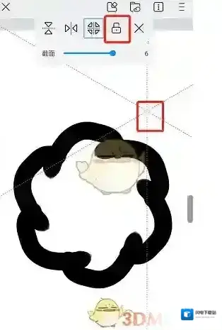 4、如果想要移动对称轴,可以点击虚线中灰色的小圆点,然后拖动即可,如果想要锁定当前对称轴,点击工具栏中的小锁,这样对称轴就无法被移动了,如图所示: