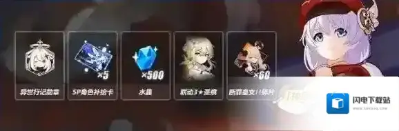 联动主题活动「异世行记」开放!活动期间,舰长完成指定任务和挑战,可获取「断罪皇女!!」角色碎片*60、「神恩颂歌」新服装「四叶草的温度」、「异世行记勋章」、水晶等奖励!