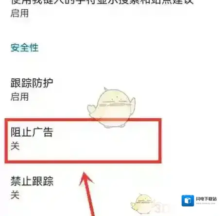 5、打开“阻止广告”开关,即可设置屏蔽广告。