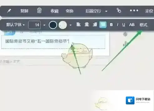 3、使用左侧样式进行排版或者输入文字,选中需要插入符号的地方,将光标放到此处,点击格式(如图所示)。