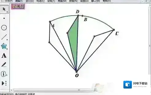 5、选中点D,选择“构造”–“操作类按钮”–“动画”,运动方向设置为向前,速度为中速,确定。点击“动画点”按钮即可看到三角形绕顶点旋转即可。