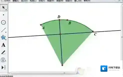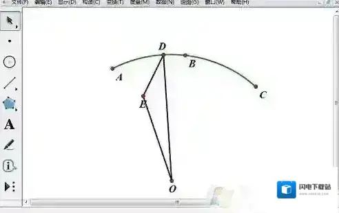 3、利用点工具在垂线上取一点E,构造线段DE、OE,选中垂线与垂足及扇形内部,按下“Ctrl+H”将之隐藏;