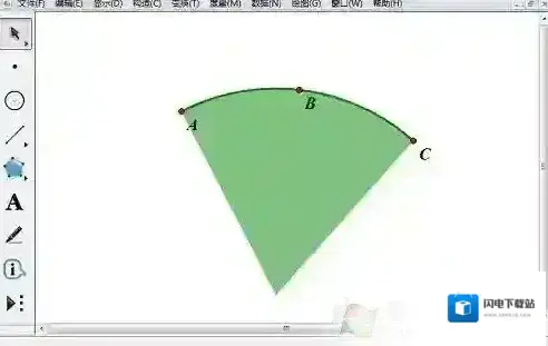 1、利用点工具绘制三个点A、B、C。选中三点,在上方工具栏中选择“构造”–“过三点弧”,继续选择“构造”–“弧内部”–“扇形内部”;