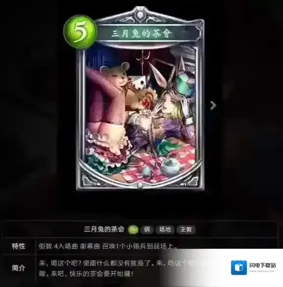 中立轴的必备卡,不管是卡面声优还是效果身材都是超一级的。在这个以中立为主的卡组里和狮子一起可以说是爸和妈,它的buff效果可以让场上手上的中立随从获得远比原费用更高的身材,手上有着buff的中立随从则会给接下来的返场提供优势。先攻的爱丽丝有着更大的作用,比对手先一手打出随从按照正常的随从交换至少场上会有一个随从吃到爱丽丝的buff,如果手上有吉尔伽美什还能提高它的斩杀线。