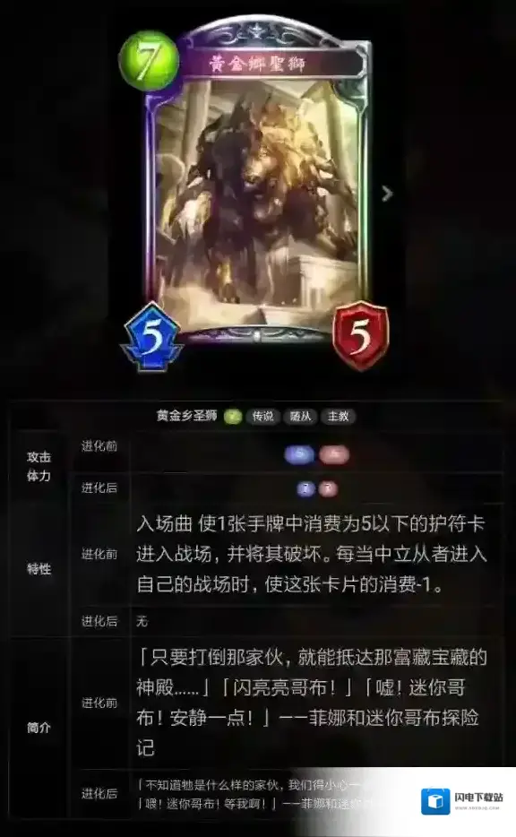 整个卡组最主要的铺场手段也是最核心的卡,自身自带减费的效果在这个以中立为核心的卡组里显得非常的强力。7费裸下也不亏的身材,还有额外的拉结界能让爆发提高了不止一个层次。正常减费的情况下它可以在5费左右拍出来,配合兽姬和茶会可以瞬间铺出很高质量的场面,就算没有结界减费后的狮子也是一个身材超模的卡,天胡的时候4费打出狮子就能把对手劝退。
