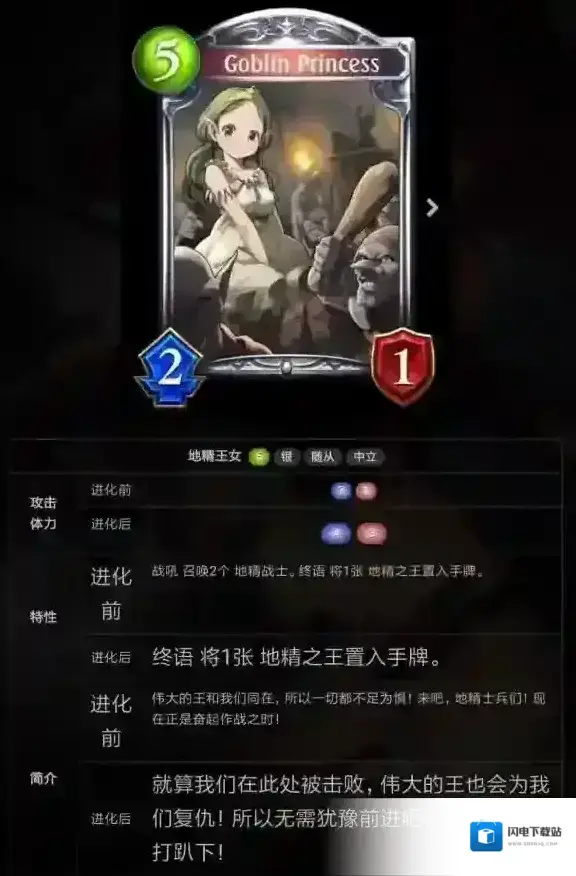 这张卡被称为“中立的不死大王”就知道和死灵的那张不死大王的效果是很像的,它是中立卡里面很优质的一键铺场,加上爱丽丝的buff加持就能让那些感觉微不足道的哥布林成为威胁,让对手不得不防。公主的遗言还能得到一张十分优质的中立4/5/5守护随从,值得一提的是配合公主的铺场手上的鹰身人或者狮子可以一口气减少三费,就算后来才抽到狮子还是可以减费提前打出。