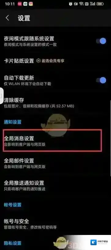 2、最后在全局消息页面中就可以看到私信接受设置功能了。