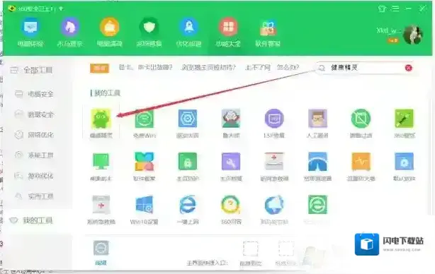 2、在右边搜索框内搜索“健康精灵”,进行下载;