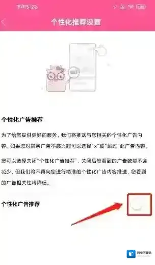 步骤二;进入个性化推荐设置,点击个性化广告推荐右侧按钮关闭。