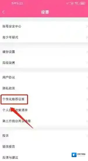 步骤一;打开韩小圈app后,进入设置,点击个性化推荐设置。
