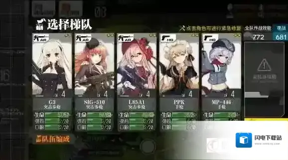解释一下为何要上场第二个梯队:因为战场上只有一个梯队的情况是无法进行撤离操作的,所以必须有个梯队在场,练级队才可以撤退,在战场上的梯队就是俗称的:狗粮队,专门留着吃惩罚的,建议是用HG(手枪)人形作为狗粮队