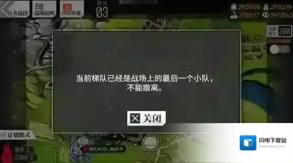 撤离后,战场上就剩下一个梯队了(注意上方红色方框,方框内为一回合中的可行动时间,超过可行动时间将自动结束当前回合)