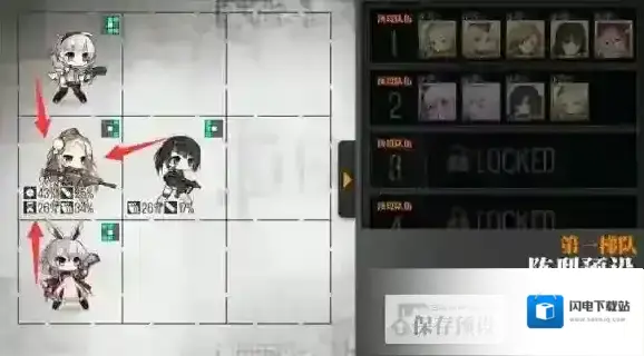 而AK5在预设1的站位是2号位,在预设2中没有人形占据其原本位置,所以要如此布置梯队阵形,保存到预设2中,这样当AK5打完一次0-2,替换成预设1中的其他AR,其他AR的位置会自动调整成4号位的站位了