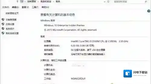 8、安装完系统信息如下,由原来的企业版 变成了 现在的 专业版,如需要激活请使用,专业版密钥 “8N67H-M3CY9-QT7C4-2TR7M-TXYCV”(估计用不到了,因为进入安装界面就已经输入了)