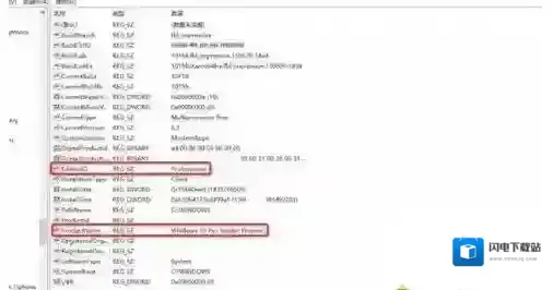 3、然后将这两处最关键的位置替换成专业版的信息两处红色框内容分别是” Professional ” 和 ” Windows 10 Pro Insider Preview” ;