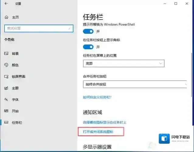 2、在任务栏设置窗口内,找到“打开或关闭系统图标”选项,双击打开;