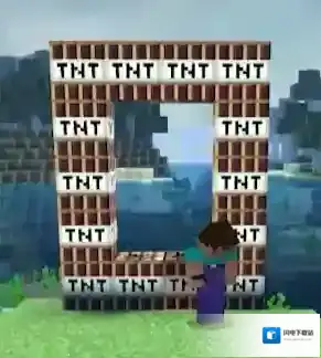 史蒂夫在方块世界游玩的时候突然发现了一个奇怪的传送门它由TNT搭建而成这个TNT的颜色…甚至还有点奇怪?
