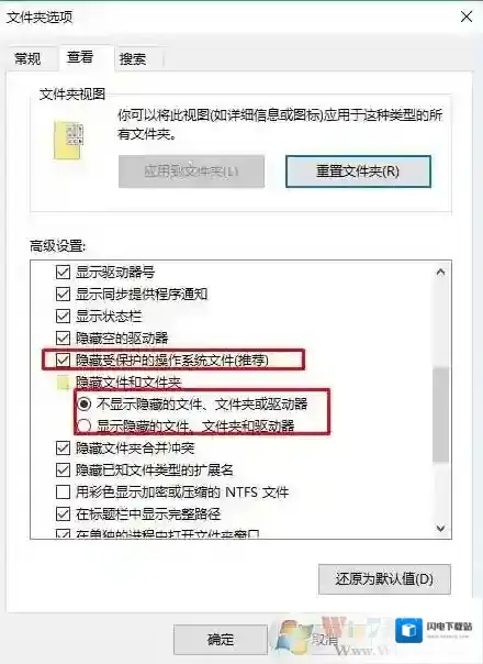 6、在查看选项卡下,我们主要会设置隐藏 显示系统文件和隐藏属性的文件,文件扩展名是否显示,还有资源管理器中显示的一些项目设置;