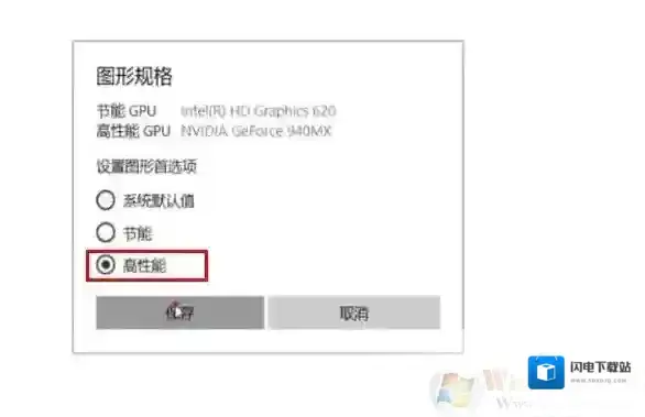 4、选择图形规格下的“高性能”,点击“保存”即可。