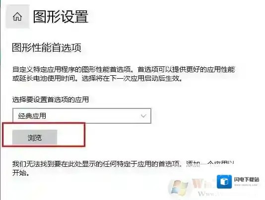 3、在图形设置中点击“浏览按钮,这样你可以找到你要加速的程序或是游戏;
