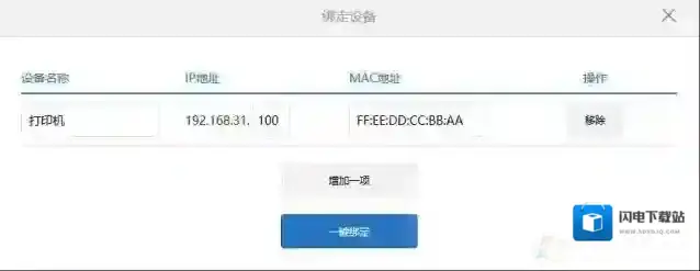 4. 在这里我们给打印机绑定IP地址,需要知道打印机的MAC地址,和设置一个固定IP,一般是192.168.1.X