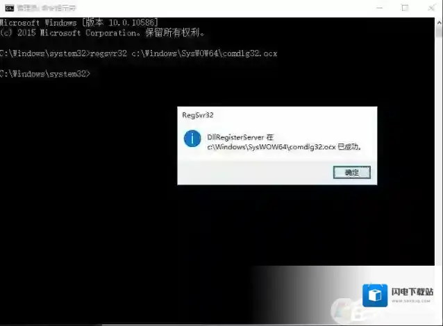 64位系统输入 regsvr32 c:WindowsSysWOW64comdlg32.ocx 回车。