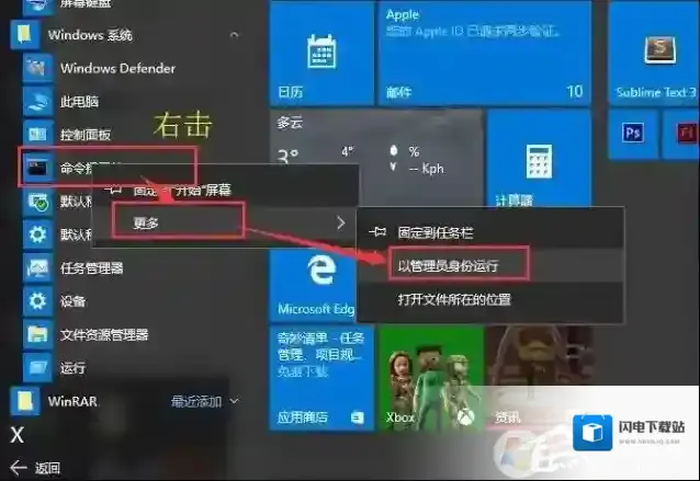 可以在开始–windows系统–右击 命令提示符 –选择以管理员身份运行。
