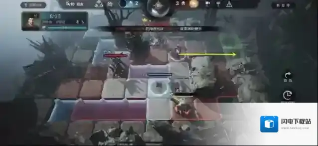 第1步:飞行兵原地待机(如飞行兵被击杀,则流浪骑士如箭头所示,向右移动一格)