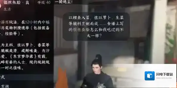 4、我们接下来继续在思恩镇的茶馆(坐标1295,1045)里找到池庞枝,这次我们献上的是银丝鱼脍。