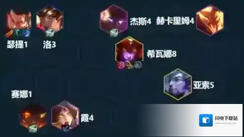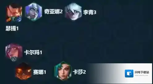 站位让瑟提站边角从侧边切入(一般和敌方c位同边),洛站在旁边辅助和旗子加攻速。人马带灵风吹敌方前排,赛娜和霞都和瑟提站同一边帮助输出并提供破甲和重伤效果。
