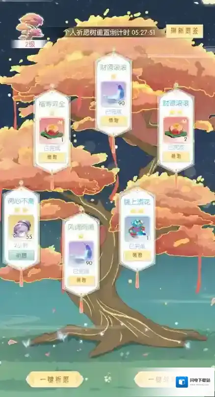 祈愿树,利用获得的卡牌实现更多祈愿,升级祈愿树获得更多奖励–