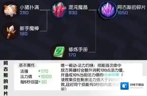点评:提供法强和回蓝,装备被动可以消耗掉敌方的蓝量,让对面的耗蓝有技能也不能用,在与敌方英雄残血对战时作用很大。