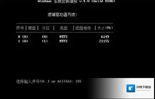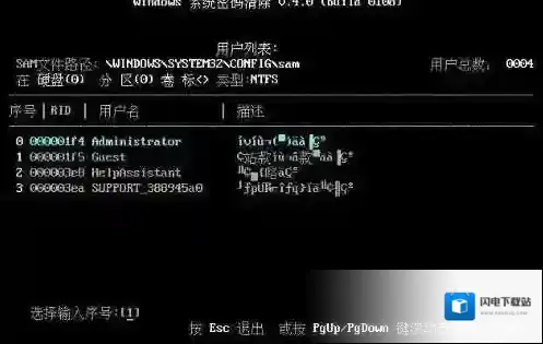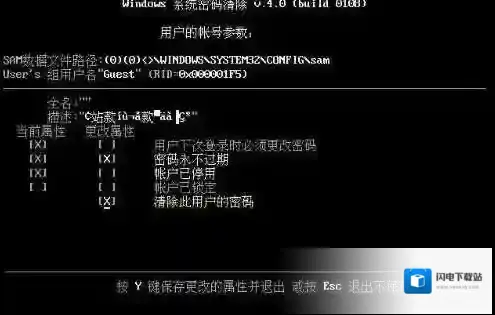 9、如上所示,我们选中 我们要清除的帐户,然后回车,选对清除密码,按Y键就开如清除操作;