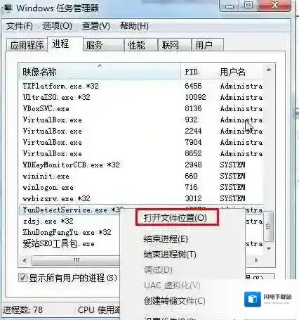 Win7怎么查看进程对应程序和文件?