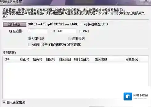 4.出现下面的界面,依然可以选择不同的盘符。左下角有“开始检测”和“尝试修复”
