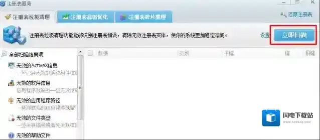 6、扫描完成后立即清理即可总结:这样我们就可以轻松的完成注册表的清理了,是不是很简单,希望对大家有帮补,如果有用请分享给朋友