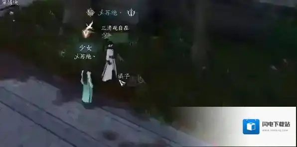 2、之后我们使用望气是可以看到小猫的闪烁点的,我们根据闪烁点就可以在大树下面找到小猫,找到小猫之后我们需要继续和少女进行对话;