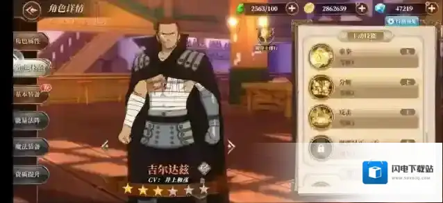 吉尔达兹极稀有妖尾里以最强为名的超强魔导士,被行会里所有人称之为老爹的人物,他所使用的魔法“粉碎”,超上级破坏魔法。因为有意无意中将身边的建筑物破坏的毛病,因此玛格诺利亚的主街道专门为吉尔达斯而改造。在手游中吉尔达兹依旧非常强势,双拳既是他的武器,属于力量型-魔法攻击,初始三技能附带土元素属性:重拳:高高跃起给对面一拳,造成小范围伤害。分解:释放粉碎力场,造成伤害同时附加沉默和魔防降低。反击:放出力场保护自己,造成伤害同时附加护盾状态。短评:强力的极稀有品质角色,抽到必练,一个字:强。技能主升推荐:分解、反击