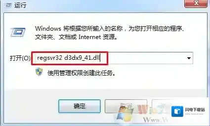 3、然后,打开:开始–》运行–》输入“regsvr32 d3dx9_41.dll”,回车即可解决。