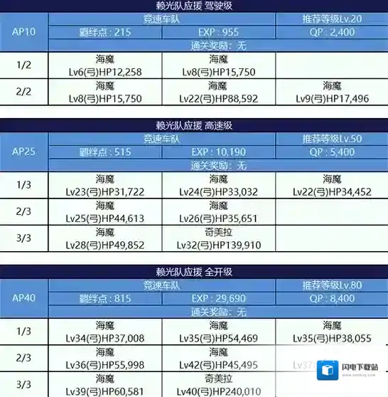 本次活动副本分为10~40AP四个难度,竞速阶段只开放前三个难度,打最高的火力全开级即可。