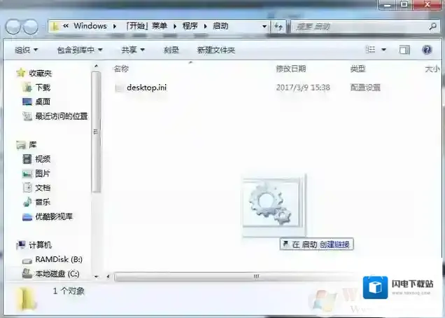 点击开始菜单,右键打开“启动”文件夹,左手按住Ctrl+Shift同时,鼠标按住setup.bat并移动到启动文件夹窗口。