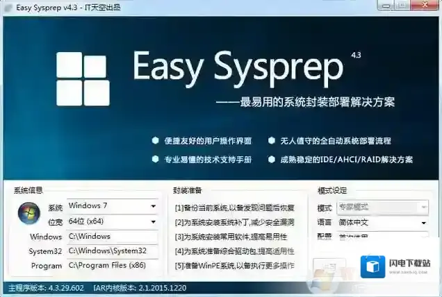 Easy Sysprep以微软系统准备工具sysprep.exe程序为核心